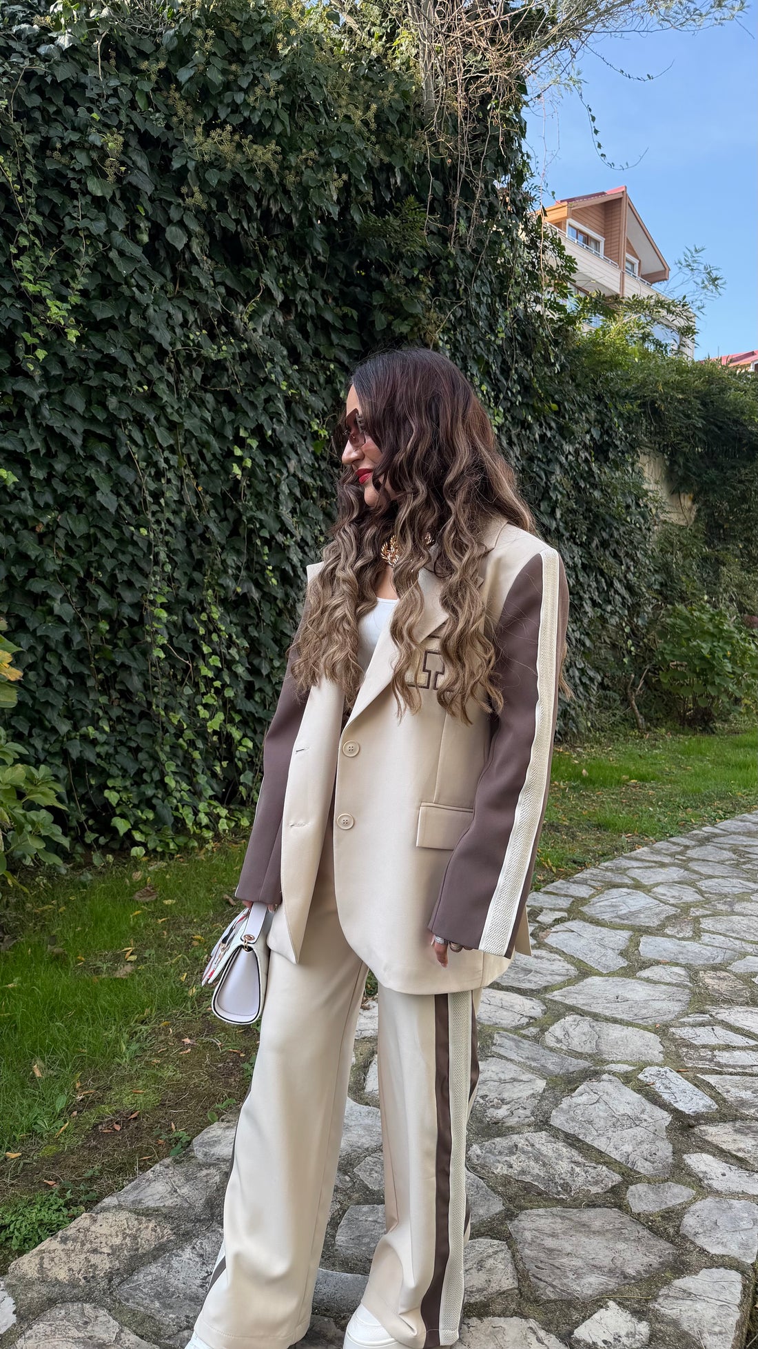 🤎🤍 Şerit Detaylı Blazer Pantolon Takım 🤍🤎