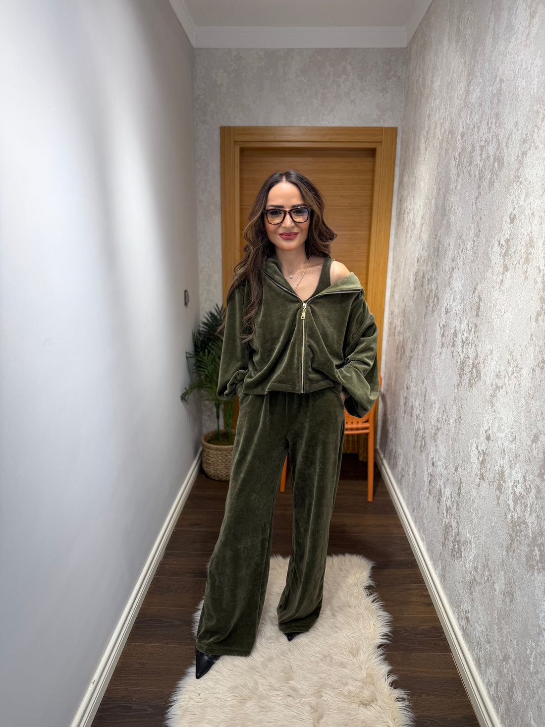 3 Parça Fermuarlı Kadife Eşofman Takımı