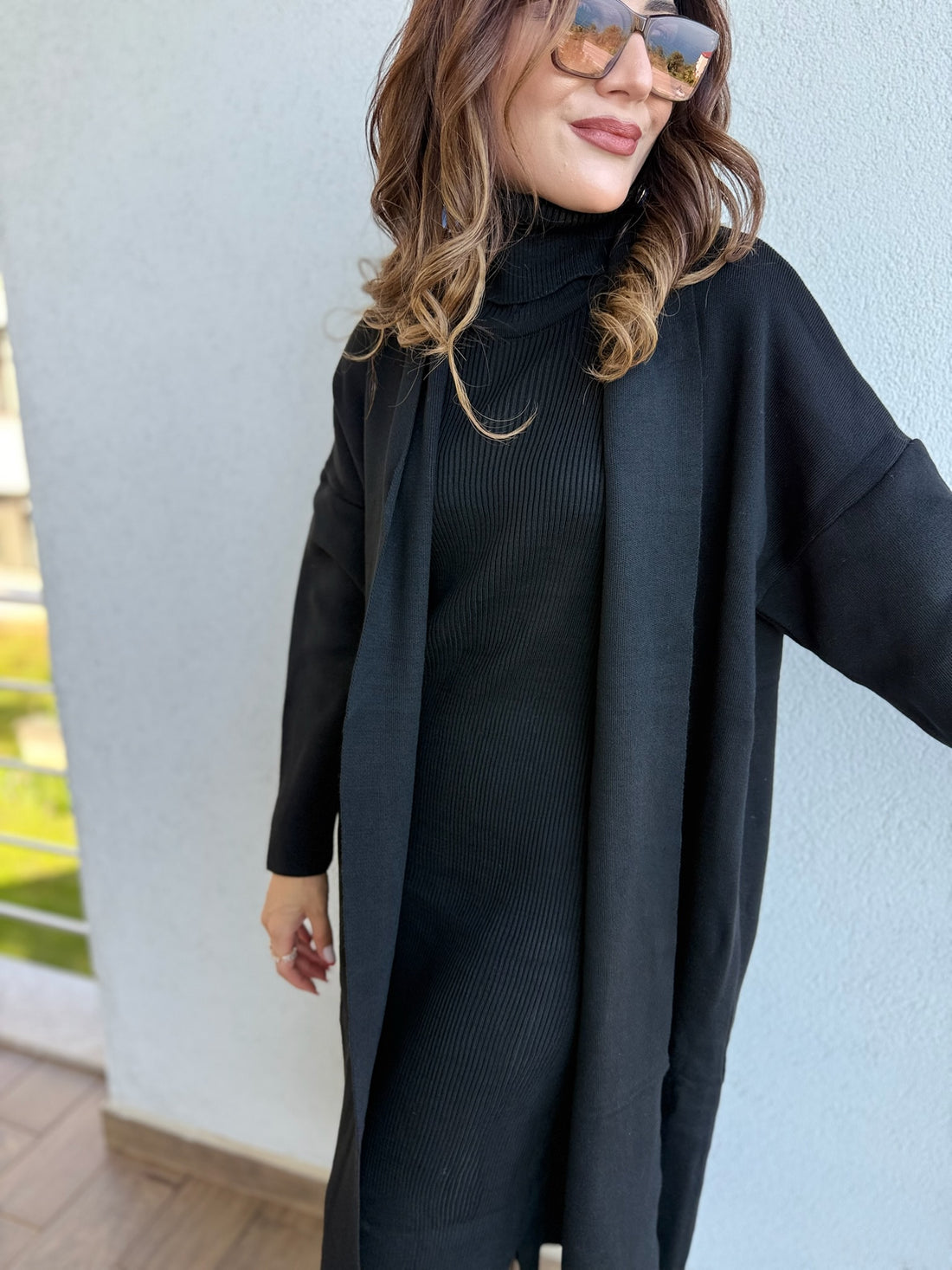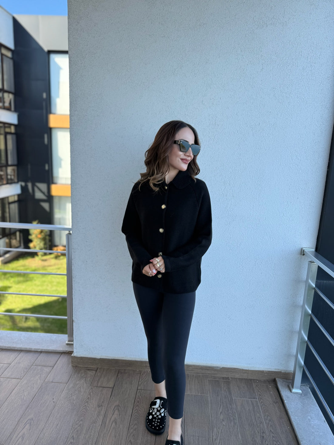 Siyah Düğme Detaylı Cepli Triko Hırka