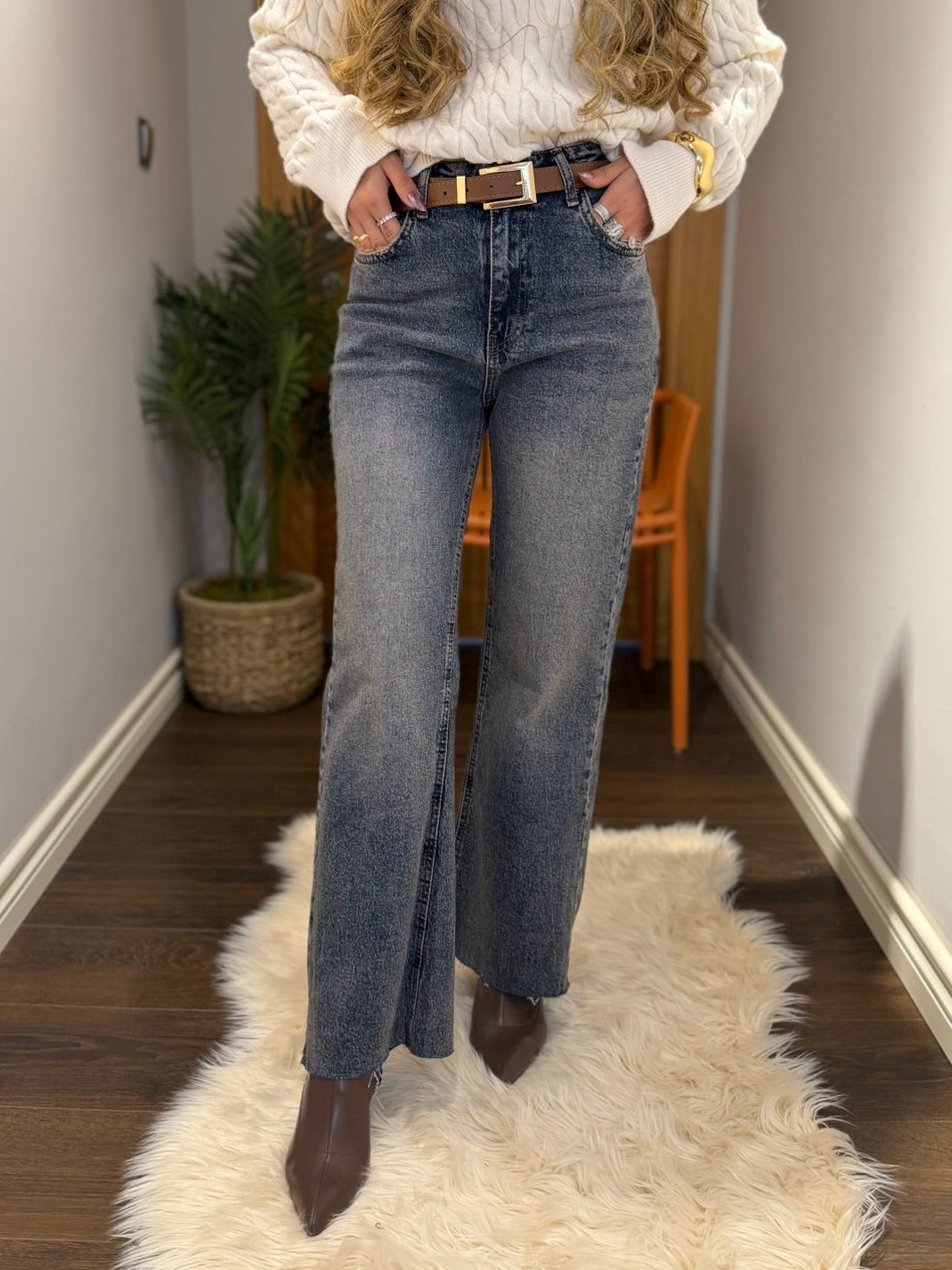 Ultra Yüksek Bel Bol Paça Jean Pantolon