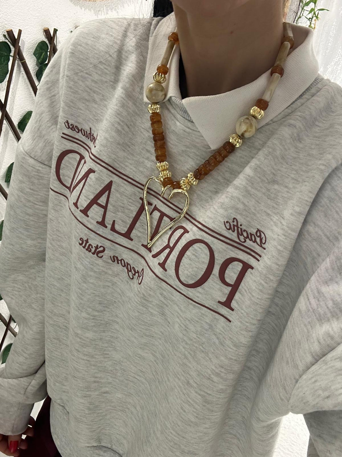 Kalpli Kahve Taş Kolye