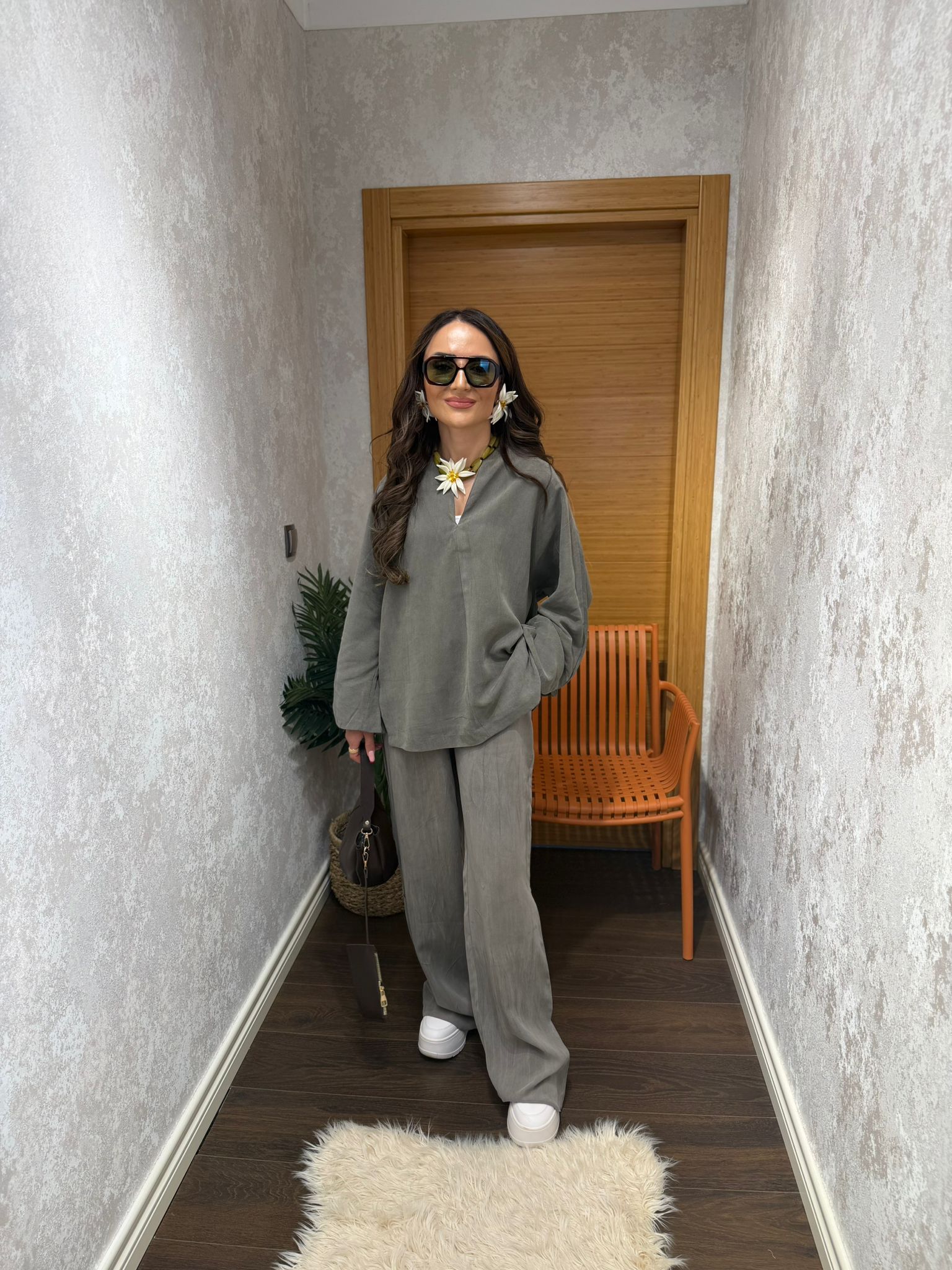 Günlük şıklığı ve konforu bir arada sunan bu özel ikili takım, modern ve minimal tarzı sevenler için tasarlandı. Yumuşak dokulu kumaşı sayesinde gün boyu rahat bir kullanım sağlarken, salaş kesimi ile hem şık hem de özgür bir görünüm oluşturur.
