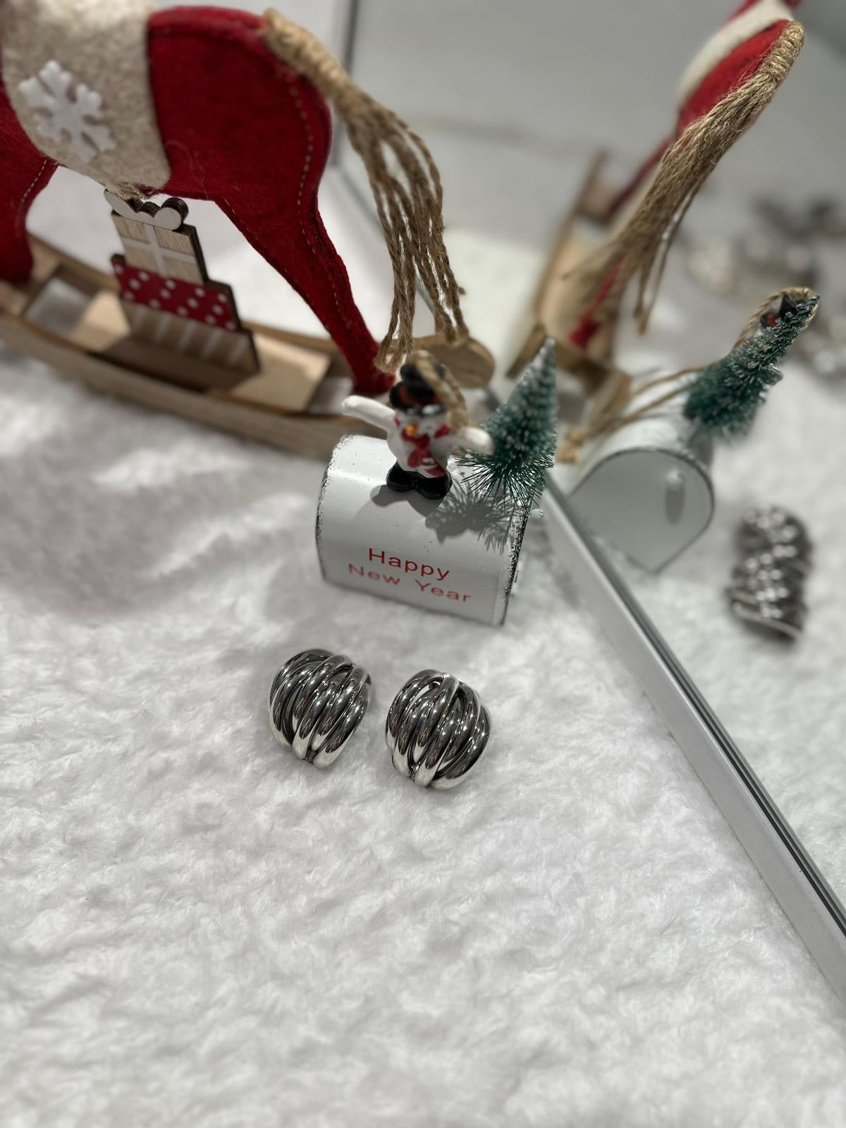 Örgü Formlu Gümüş Renk Küpe