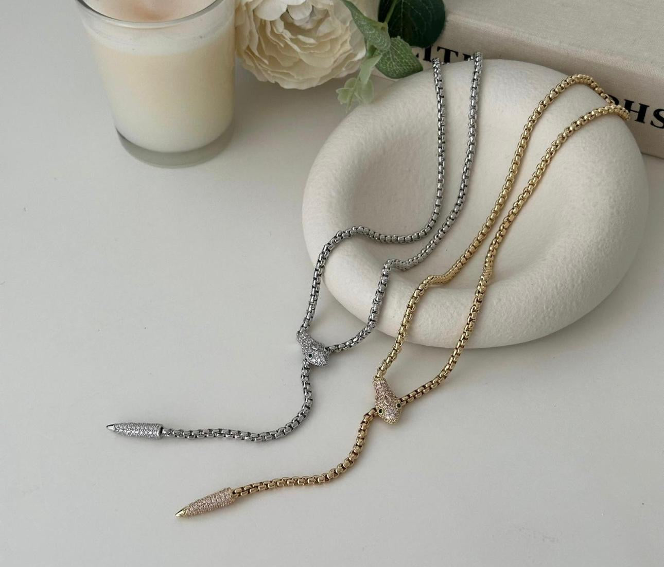 Zirkon Taşlı Panter Figürlü Gold Kolye